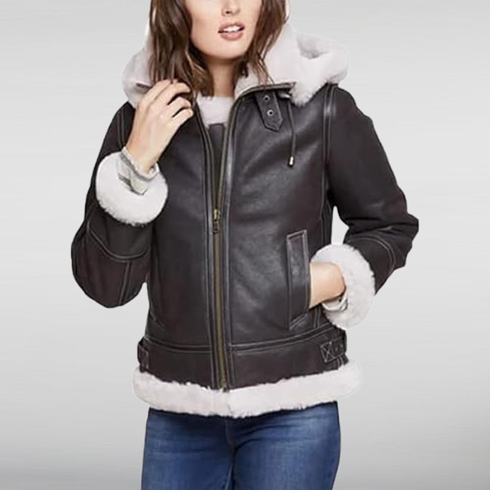This B3 Bomber Jacket is a premium Sheepskin Leather Jacket and is fashionable as well as long-lasting. It looks sleek and contemporary because of the black hue. While an additional layer of weather protection is provided by the fur. The jacket is the ideal option for those chilly winter days because it is totally lined with warm, silky fur.