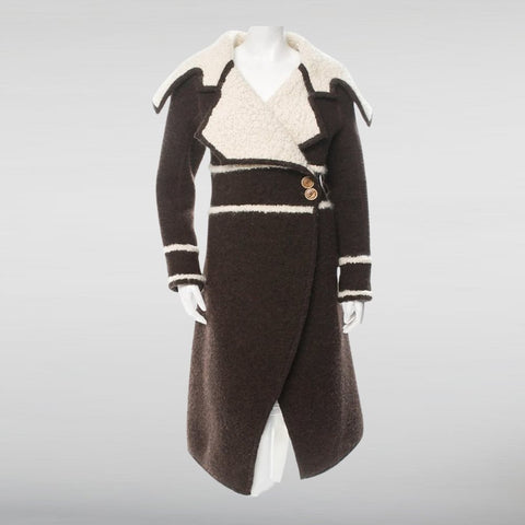 For a chic yet cozy look, pair it with a turtleneck sweater and skinny jeans. And so, the Cameron Diaz Holiday Coat can also be styled with a dress or skirt for a more polished appearance. The coat's neutral chocolate brown color makes it easy to mix and match with other pieces, offering endless possibilities for creating fashionable outfits.