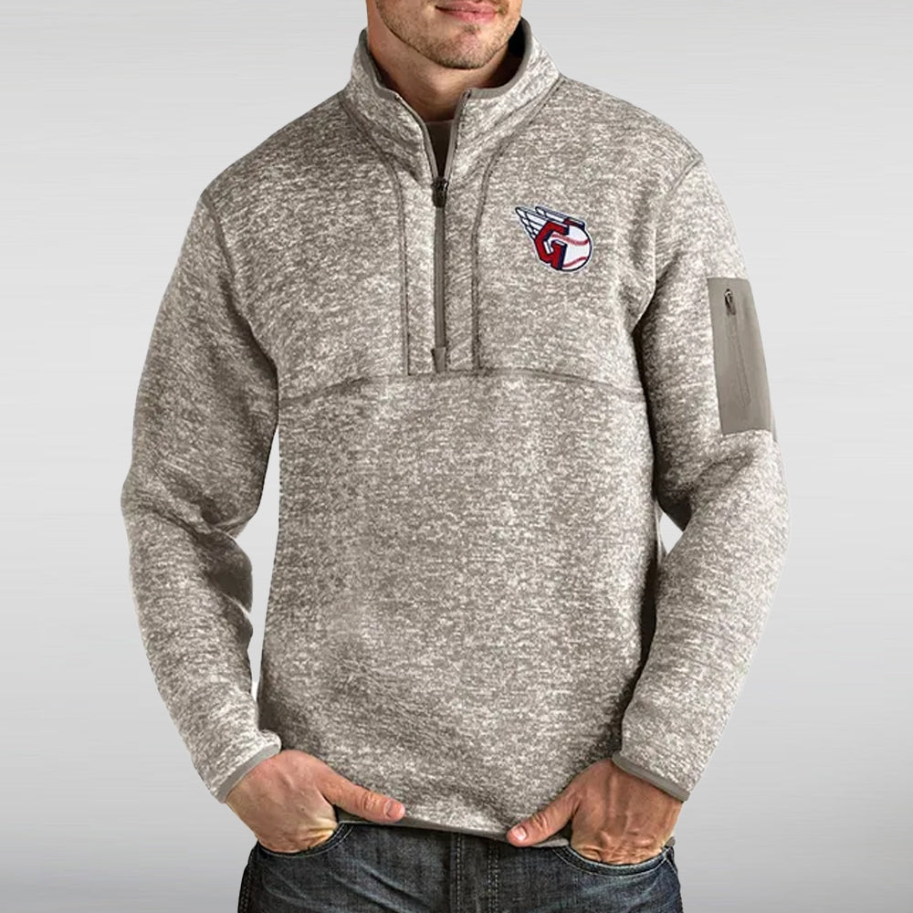 Without the Cleveland Guardians Pullover Jacket, made for the die-hard fan, you can stay warm and cheer for your team. This jacket, with its soft viscose inside and premium fleece construction, guarantees warmth and comfort for chilly game days or casual trips. The pullover's half-zipper construction gives it a modern appearance and makes it simple to adapt to shifting weather.