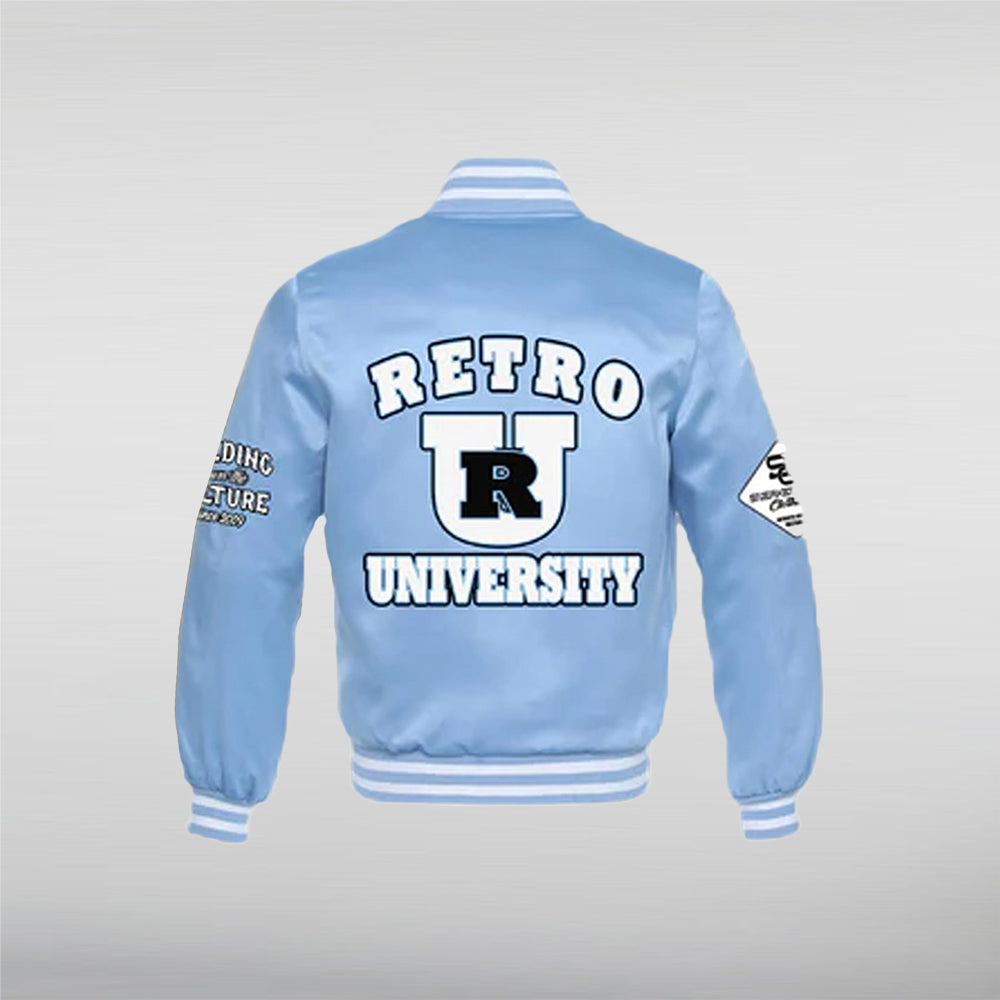 The university blue shade of the Varsity Jacket adds versatility to your wardrobe, making it perfect for matching with jeans or a casual dress for a remarkable outfit. It’s more than just attire; it’s an expression of style and character, ideal for university gatherings, casual outings, or simply socializing with friends.
