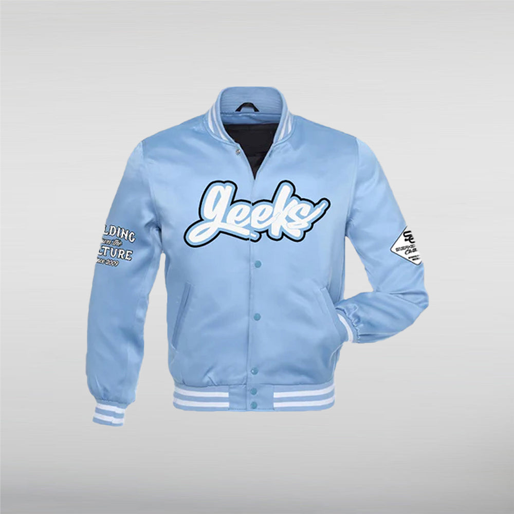Embrace vintage elegance with the Geeks Retro University Varsity Jacket, perfect for a stylish look. Made from premium satin, it combines modern style with comfort, thanks to its soft viscose lining.