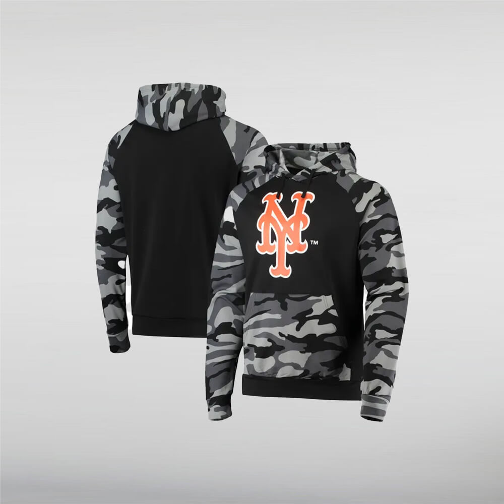 The standout camo print adds a tactical edge to your wardrobe, reflecting a rugged, adventurous spirit. Featuring a classic pullover design, this New York Mets Hoodie is both practical and stylish. The rib-knitted cuffs and hemline ensure a snug fit that keeps the warmth in and the cold out. While the kangaroo pockets provide ample space for storing essentials or warming your hands.