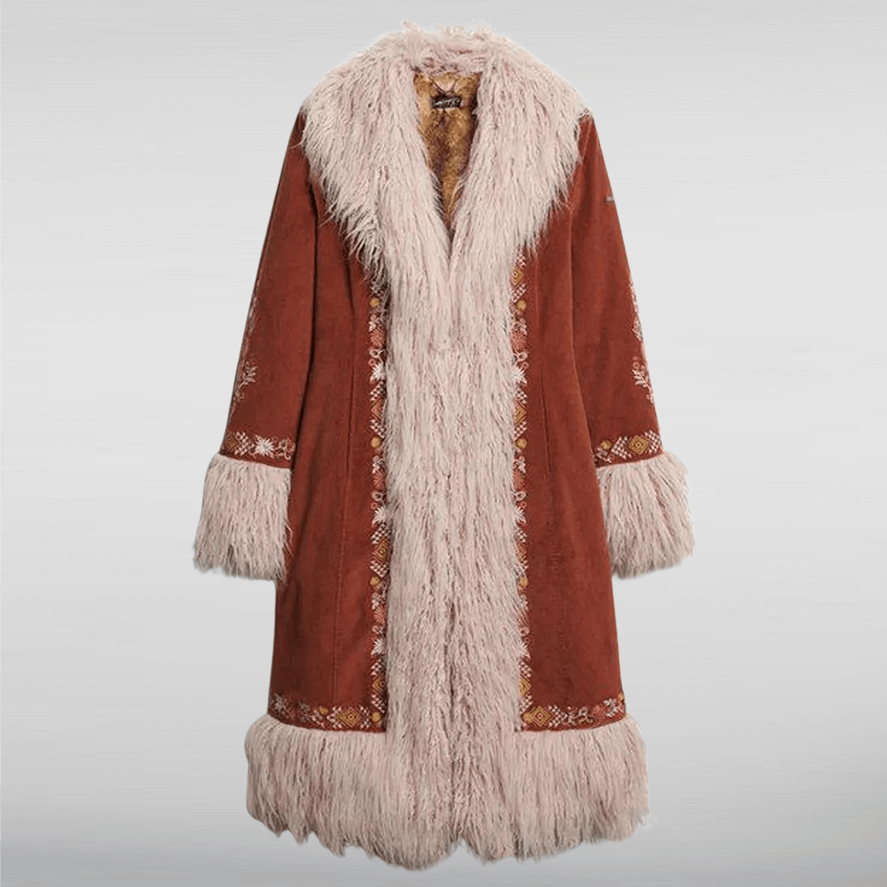 Above all, this coat levels up your look when paired with denim or leather pants. Add a neutral turtleneck underneath for a trendy balance. Alternatively, wear it over a dress for chic winter elegance. Its fur collar and cuffs make it stand out instantly. Afterward, complete your look with boots and minimal accessories.
