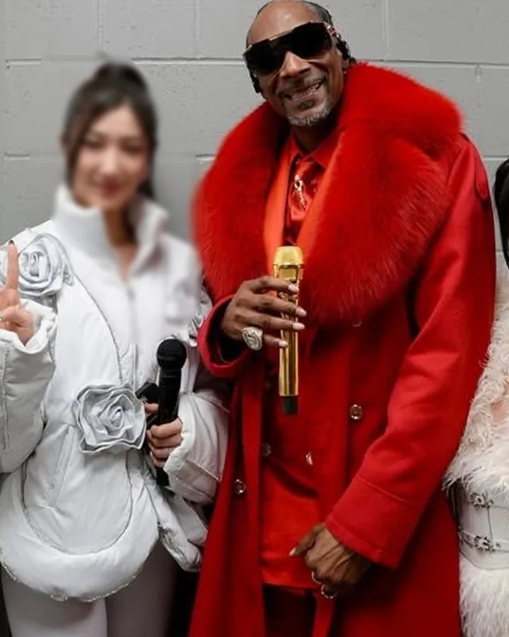 The coat features full-length sleeves, open-hem cuffs, and a classic button closure that keeps the look clean and timeless. Storage is well-handled with two side pockets for daily essentials and one inner pocket for added convenience. Finished in a striking red tone, this Snoop Dogg halftime show red coat captures attention without overdoing it.