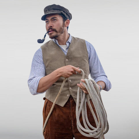 Get influence by the stylish Henry Golding to embrace a sophisticat look with the Henry Golding Ungentlemanly Warfare Vest is ideal for fans of "The Ministry of Ungentlemanly Warfare" and those who value versatile, high-quality wardrobe essentials as it combines old-fashioned charm with modern functionality.